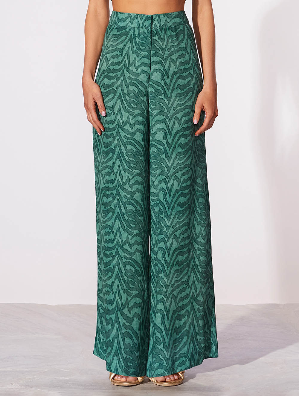 Calça Pantalona Estampada Natural