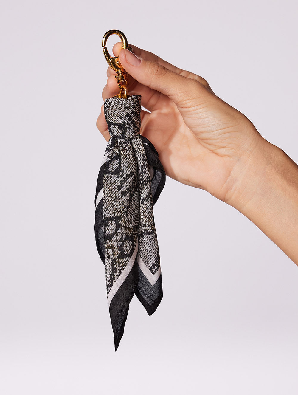 Chaveiro lenço em tecido leve e sofisticado. O modelo possui estampa localizada e fecho de metal no banho dourado, ideal para ser usado em bolsas ou chaves.