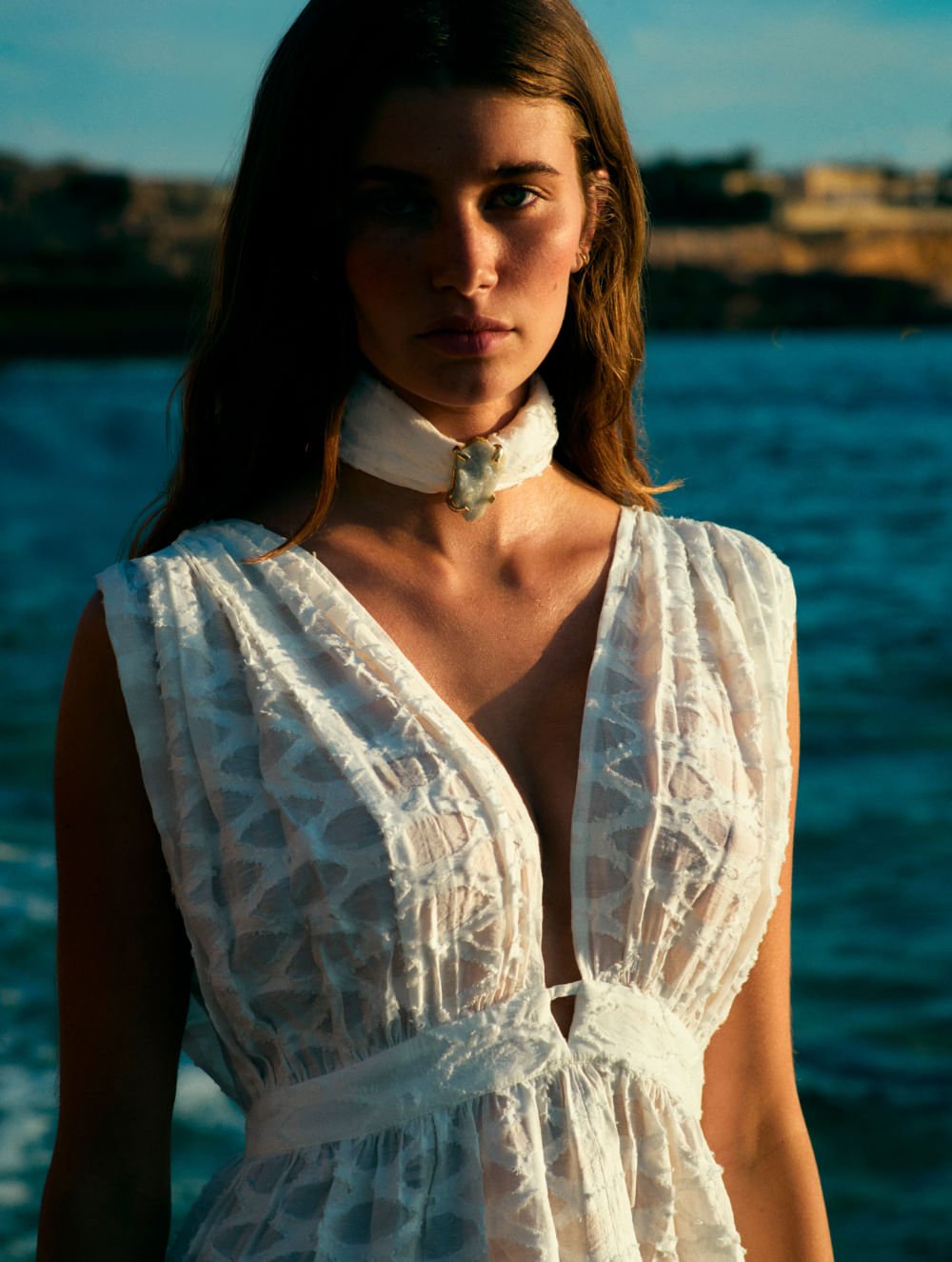 Colar lenço em tecido trabalhado com textura. O modelo possui passante de pedra natural e garra metálica banhada a ouro.