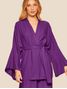 Kimono liso. O modelo possui modelagem ampla, tecido fluido com caimento leve e faixa para amarração.