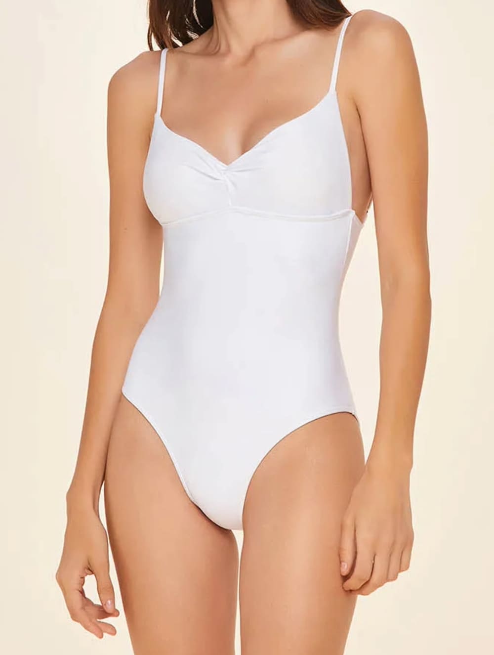 Maiô meia taça liso. Possui detalhe de nó no meio do busto e alças reguláveis.