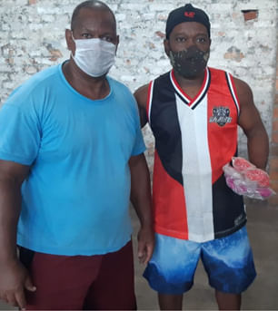 máscara exclusiva ao lado da dupla OsGêmeos, que foram doadas para