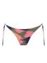 Tanga amarradinha estampada. Modelo possui laterais finas ajustáveis com ponteiras de metal em banho de Ouro Velho, peça possui leve franzido nas costas e cobertura pequena.