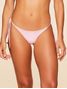 Tanga amarradinha lisa. O modelo possui laterais finas ajustáveis com ponteira de metal no banho Ouro Velho. Peça com cobertura pequena e leve franzido nas costas.