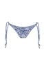 Tanga amarradinha estampada, com parte de trás franzida e detalhe de ponteira.