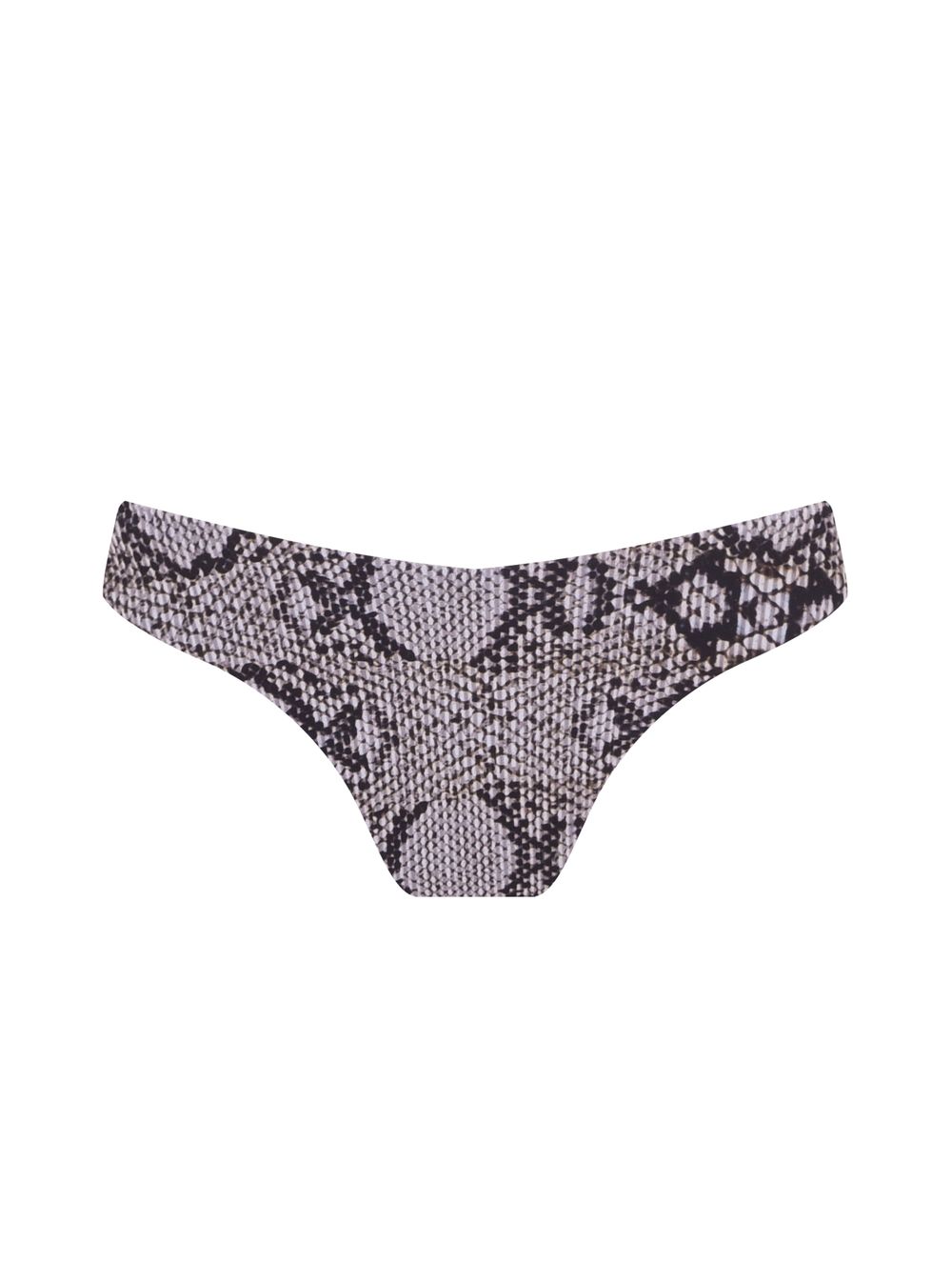 Tanga fio duplo estampado. O modelo possui cava alta e cobertura pequena, detalhe de metal no banho Ouro Fosco nas costas.