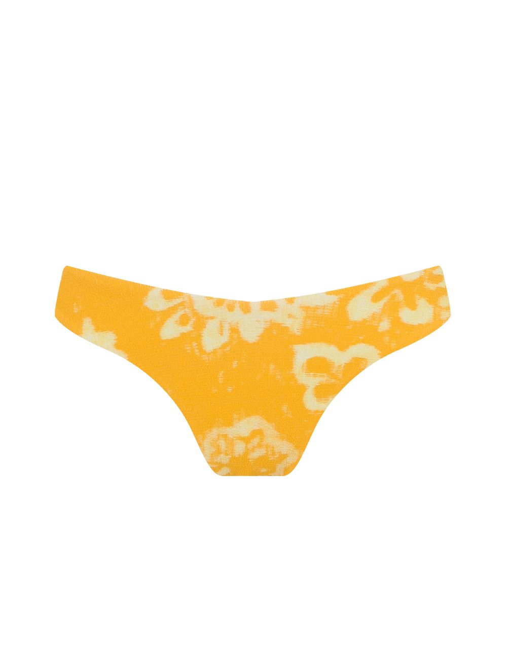 Tanga fio duplo estampada. O modelo é trabalhado em tecido com textura, possui cava alta, cobertura pequena e detalhe de metal no banho de Ouro Fosco nas costas.