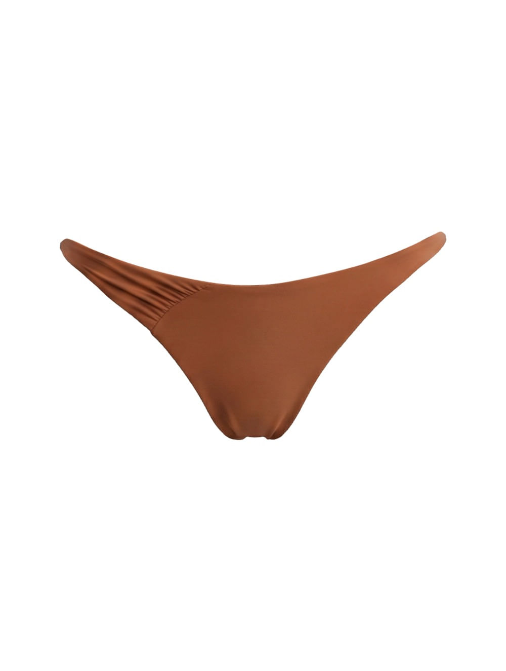 Tanga fio duplo liso. O modelo possui cobertura pequena, com detalhe de recorte e franzido em um dos