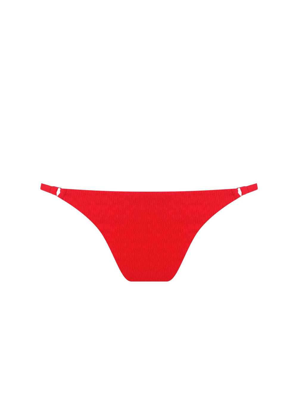 Tanga lateral estreita. O modelo é trabalhado em tecido com textura, possui cobertura pequena, acabmento embutido, regulagem nas laterais e detalhes de metal no banho de Ouro Fosco.
