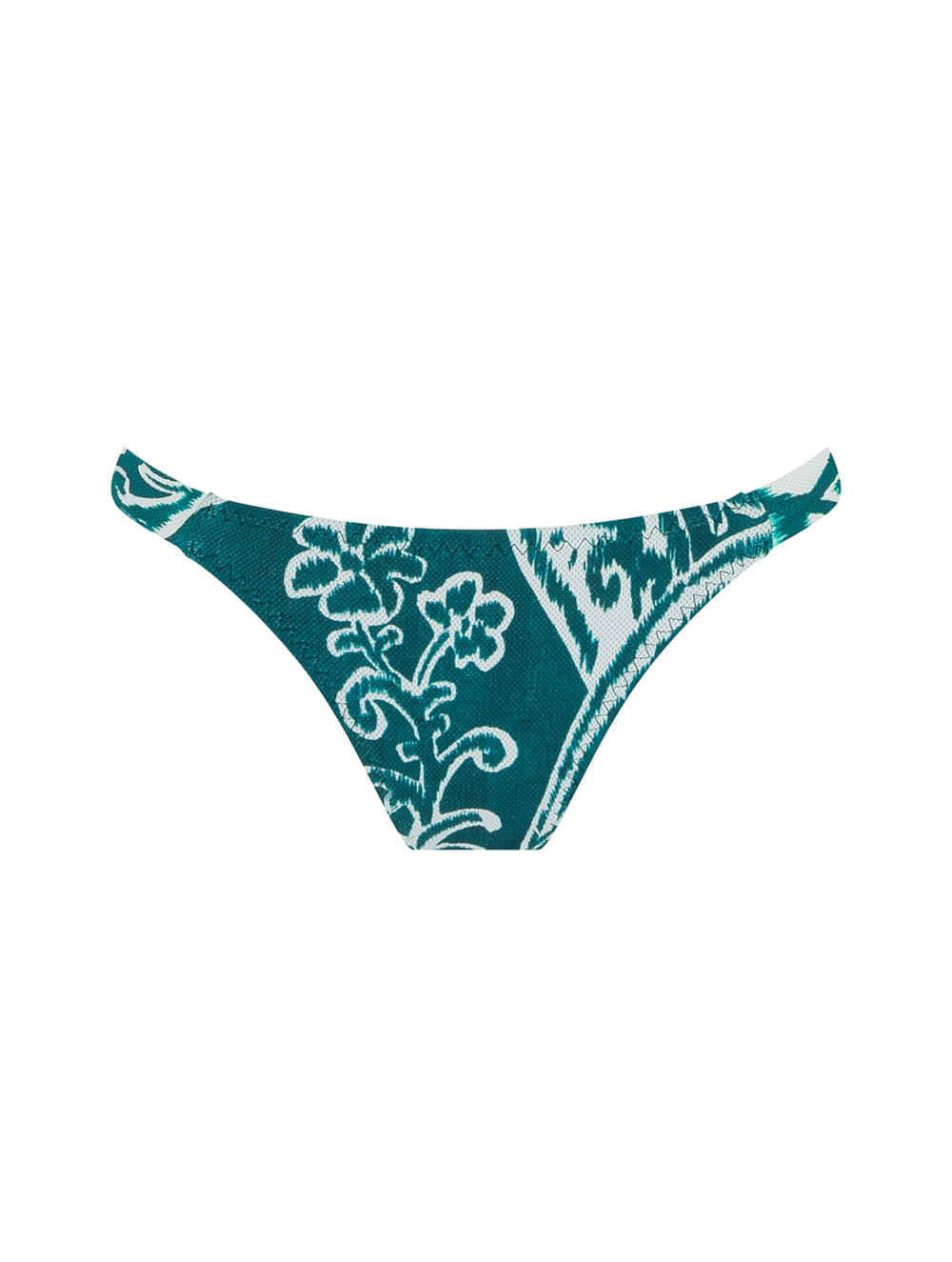 Tanga lateral média estampada. O modelo possui recortes de elástico nas laterais, costura em zig zag largo por toda a peça, garantindo um efeito diferenciado e detalhe de logo de metal no banho de Ouro Velho nas costas.