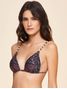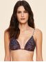 Top cortininha estampado. O modelo possui bojo removível, detalhe de metal com nome da marca gravado no centro do busto e alças trabalhadas com regulador.