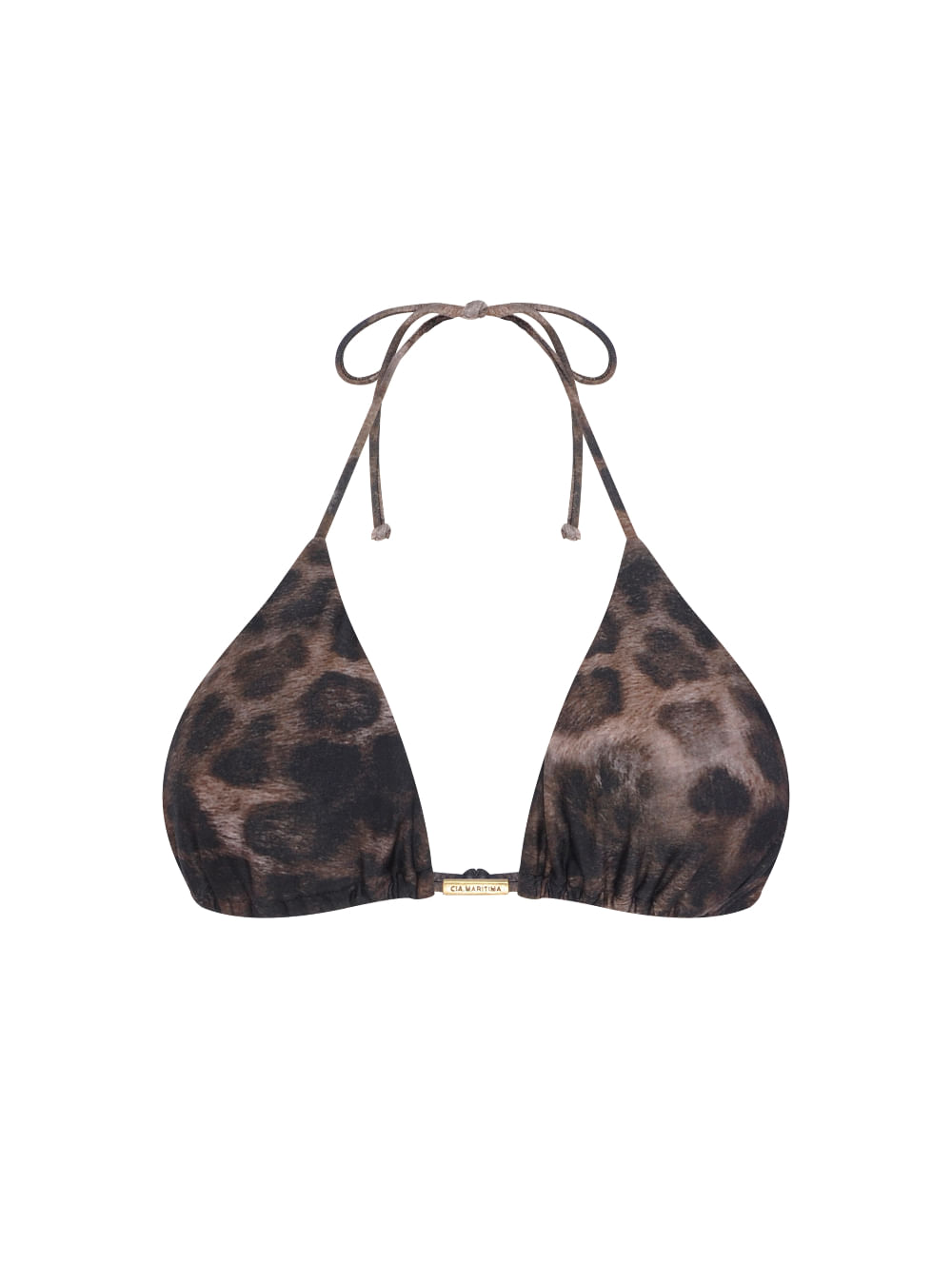 Top cortininha. O modelo possui padronagem animal print e bojo removível.
