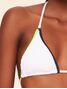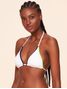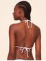 Top cortininha liso, com detalhe de argolas e viés contrastante.