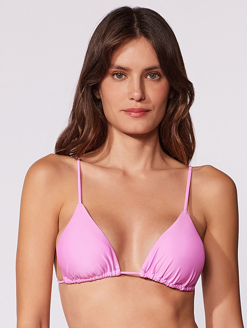Top cortininha liso. O modelo possui bojo removível e possibilidade de amarração no pescoço ou nas costas.