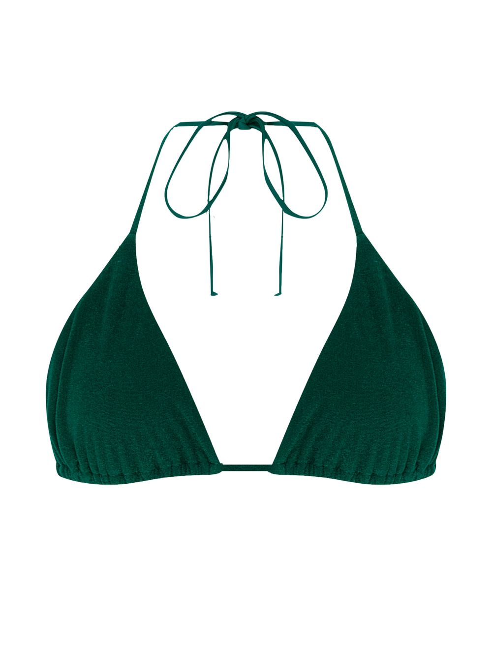 Top cortininha liso. O modelo possui bojo removível e alças finas para amarração no pescoço ou nas costas.