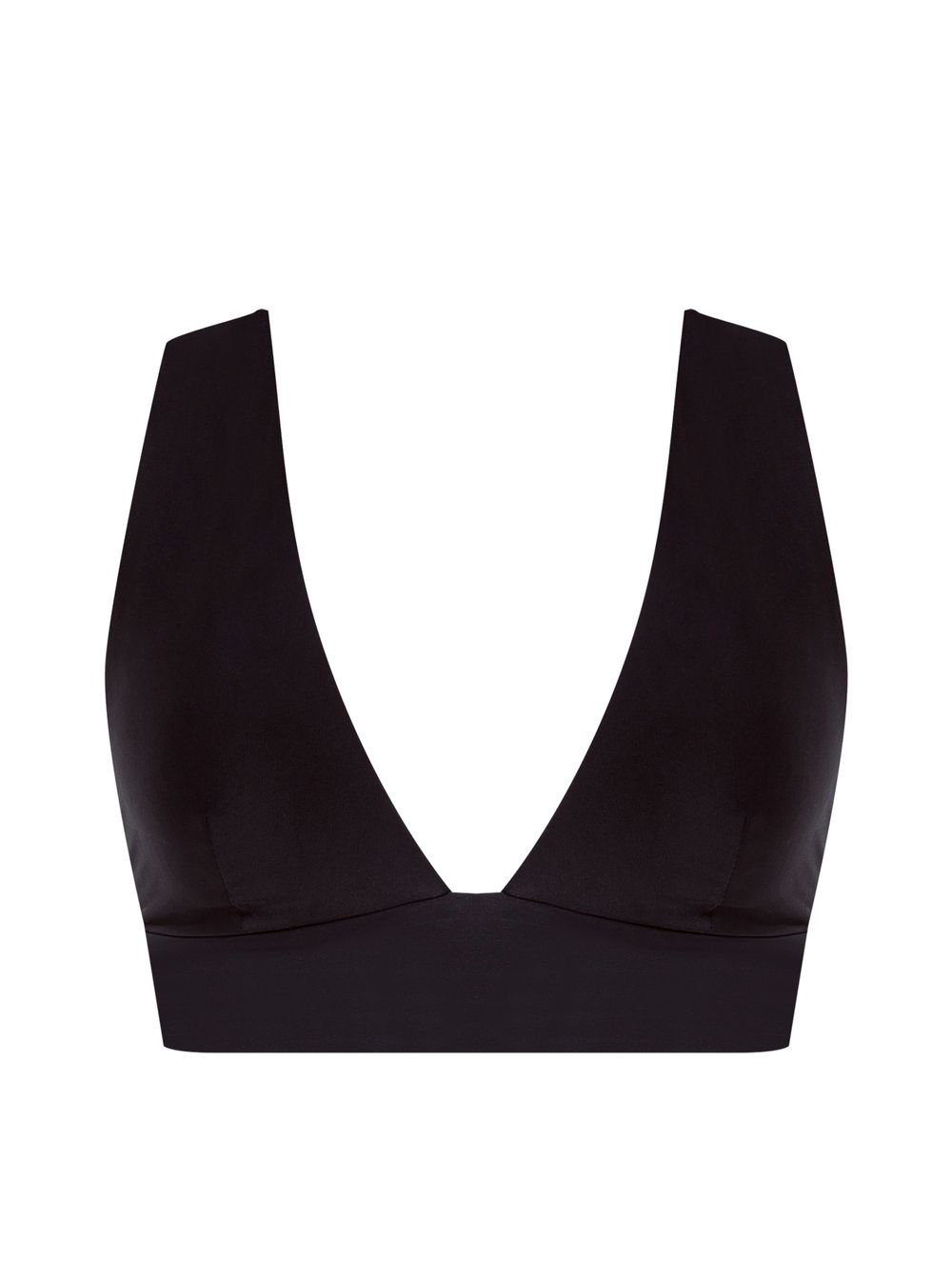 Top triângulo liso. O modelo não possui bojo, possui alças largas, pala abaixo do busto e pode ser amarrado de diversas formas nas costas.