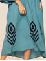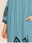 Vestido longo bordado. O modelo possui decote em V, bolsos laterais e mangas amplas.